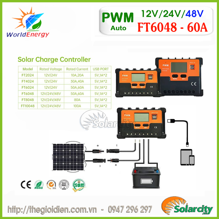 Bộ điều khiển sạc PWM 60A – 48V (FT6048)
