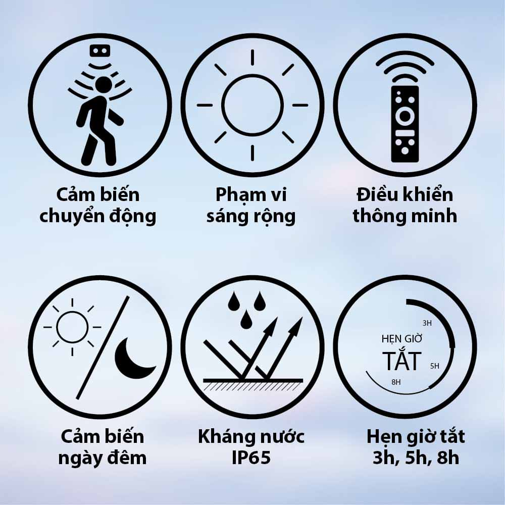 – Tự động bật sáng khi trời tối, tự động tắt khi trời sáng không phải để ý đến thời gian tắt mở hằng ngày.