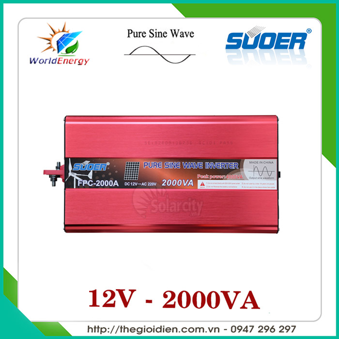 Đặc biệt Inverter kích điện sin chuẩn Suoer 2000W – 12V
